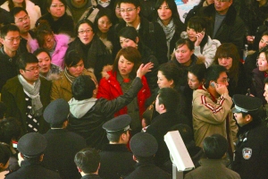 昨日中午,3號(hào)航站樓C33口登機(jī)處聚集了200多名乘客,部分乘客情緒激動(dòng),不時(shí)高喊“我要回家”之類的口號(hào)。一國(guó)航值班經(jīng)理在現(xiàn)場(chǎng)被乘客圍住,20余民警來(lái)到現(xiàn)場(chǎng)維持秩序。