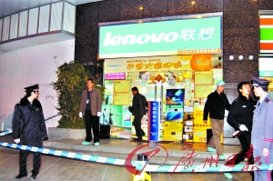 就在這家專賣店隔壁的7-11便利店的一名陸姓工作人員說,晚上大約7時30分,她在便利店里工作時,突然聽到隔壁“嘭”的一聲響,她趕緊到隔壁看看情況,就在聯想專賣店門口不遠處,一個男子倒在地上,他的身上流了很多血。