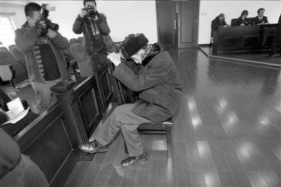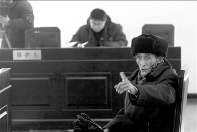 庭審時(shí),99歲老漢周志評(píng)被法官特許坐著受審。聽了一會(huì)兒后,他放松了下來(lái),一度還蹺起了二郎腿。