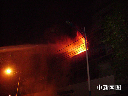 中新網南寧2月13日電 (胡明軍 劉創新 王剛) 2月12日晚上23時16分,廣西南寧市思賢路一按摩院發生火災,南寧消防支隊接到報警快速出動,消防員破拆防盜門成功撲滅大火,并搜救出3人。