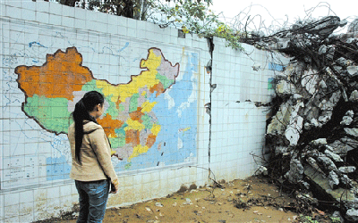 “真沒有想到,斷壁殘垣的北川中學廢墟內,竟然還有這么大一塊完好的圖像……”昨日上午,網友羅先生報料稱,他和朋友在北川中學廢墟祭奠時發現了一幅完整的中國地圖,而周圍墻面都遭到了重創,堪稱奇跡。