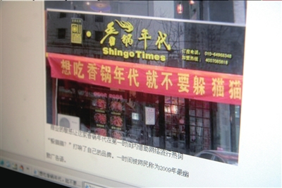 據悉,2月22日上午,這家飯店在大門外懸掛了“想吃香鍋年代,就不要躲貓貓”的橫幅,有路過的市民將這一橫幅拍照,并發布在了貓撲等各大網絡論壇上,引發眾多網民熱烈討論。