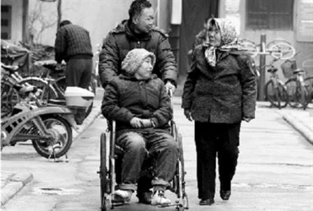 街坊們經常用各種辦法幫助這個家:女兒的學費是鄰居們湊的,經常給他們送衣服、送飯,為了能讓曹青云站起來,還幫他們申請了全額低保,拉到贊助單位幫她定做了一個輪椅。