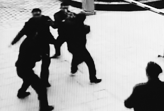 從目擊者的描述和監控錄像上來看,群毆中,動用了鐵棍、木棒,幾名身著保安制服的人還手持警棍。最后,10多名保安被3名男子打得一直逃到了教工路上。