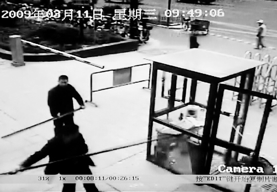 “最后,我們搶到了鐵棍,保安一見就全跑了,我們一直追,追到教工路上也沒趕上他們。這時,旁邊有些業主說‘咱不要這樣的保安,把他們趕走,崗亭也砸掉。’我們就把兩個崗亭的玻璃打碎了。大家都是交了物業費的,他們吃我們的,還要打我們,哪有這樣的道理。當時太氣憤了,有點過激。”焉先生說。