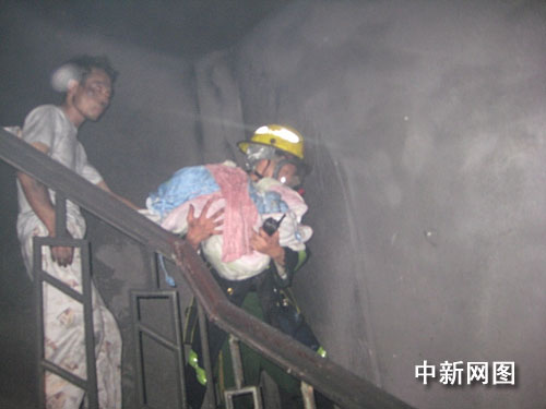 了解情況后,指揮員立即命令官兵迅速展開滅火營救行動,鋪設兩支水槍進行滅火,及時消滅樓梯口的火勢和濃煙,兩名官兵佩戴空氣呼吸器順著樓梯間深入樓內救人,將13名被困人員分批救出,其中有一個2個月的嬰兒。經過1個多小時的奮勇戰斗,大火被撲滅,被困的居民也全部被救出。