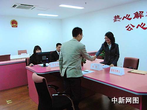 記者了解到,該工作室選擇了便于握手言和的“T型圓角”形狀的調解桌,桌子猶如一把鑰匙,寓意著打開當事人雙方的心結。而粉紅的色調,綠色的植物,布藝的椅子更增添了工作室溫馨如家般的氛圍。