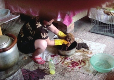 貴婦狗每染過一次顏色就加深一些,漸漸接近褐紅色,魏某笑著說:“你看神奇吧,貴婦就慢慢變成泰迪了。”他說現在狗市上做過活的狗很多,但是做完后都不會拿到狗市里的正規店鋪里賣,只在散市賣。“這樣賣出去人找不到你,比較保險”。