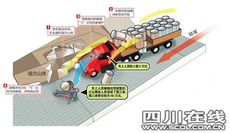 當(dāng)車行駛到云南省昭通市境內(nèi)時(shí),由于道路坡陡,車速較快,貨車制動(dòng)失靈,“砰——”的一聲巨響瞬間發(fā)出,該車車頭猛地撞到了公路右側(cè)的塌方山體上。坐在駕駛室內(nèi)的楊某一下子就“飛”出了擋風(fēng)玻璃外,車廂內(nèi)的黃樟油桶沖斷貨車欄板,將駕駛室沖離車體,然后沖向已“飛”出車外的楊某,將其壓住,致使楊某當(dāng)場(chǎng)死亡。文師傅和周某在車禍中受輕微傷。