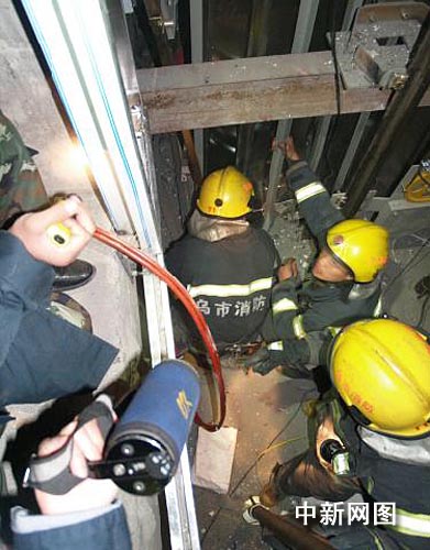 21時21分,消防官兵到場后發(fā)現(xiàn),事故現(xiàn)場是一幢在建的高層住宅樓,據(jù)安裝電梯的一名負責(zé)人講,事發(fā)前電梯停在28樓,當時有兩名工人在電梯內(nèi)施工,其中一名在轎廂頂部,另外一名則在轎箱內(nèi)部,電梯突然失去控制后向下墜落,一直墜到了底層,兩名工人全部被困。電梯間內(nèi)則堆滿了鋼絲繩和一些零部件,轎箱根本無法向提升,現(xiàn)場的工人們只把轎廂上面的那名工人救了出來,而轎廂被壓在了底層,加一名工人仍被困在轎廂內(nèi)。