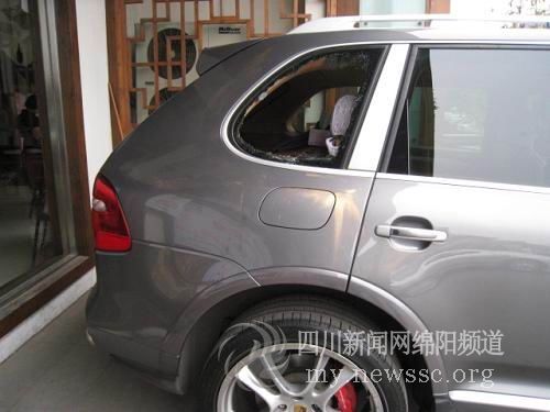 綿陽市芙蓉漢城老房子酒樓門口近日發(fā)生失竊案,保時捷轎車右側窗戶玻璃被砸碎,車內物品被盜,失主稱損失15萬。