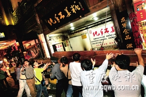 昨晚8時(shí)16分許,洪崖洞傳統(tǒng)風(fēng)貌區(qū)四樓天成巷438號至440號之間一長8.27米、寬1.1米的商鋪飛檐及附屬物發(fā)生垮塌,砸傷5人,其中傷勢較重者1人。