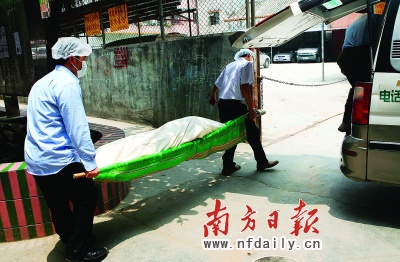 中午1時(shí)許,在保安與警察的護(hù)送下,女子尸體裹著白布被抬出,隨后被殯葬車接走。阿保和房東則被警方帶走調(diào)查。