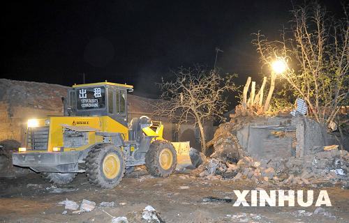 記者在事故現場看到,兩輛推土機正在作業。一些房屋出現裂縫,玻璃被震碎。