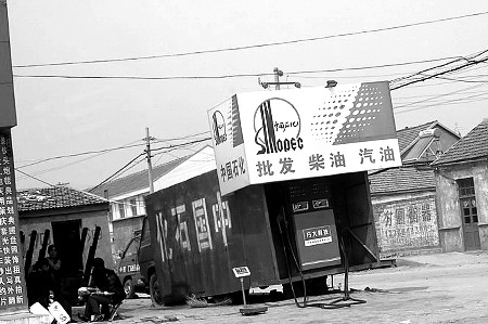 在小王鄉、佘家巷鄉、信陽鄉、柳堡鄉、水灣鎮、碣石山鎮、埕口鎮、車鎮、馬山子鎮等鄉鎮,無一不存在“黑加油站”。有的將油罐高掛在墻壁上,管子順下來打開閥門就加油;還有的自己制造加油機,外表與壓水井差不多;有的則干脆擺幾個塑料桶就干起加油營生;還有的像大篷車似的等等,不一而足。