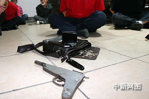 中新網(wǎng)佛山5月5日電 (孫建駒 陳冬生) 廣東佛山市禪城區(qū)警方今日凌晨出動30多名警力,突擊檢查位于佛山市區(qū)兆祥東路朝東村下石角大街的一間檔口,當(dāng)場抓獲18名參賭人員,現(xiàn)場兩名攜帶自制槍支和管制刀具的嫌疑人同時被抓獲歸案。