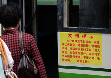 在新店至北峰客運專線班車上,記者看到,車門上或者車內并未張貼類似的提示或免責條款,沿途也不時有老人乘車。
