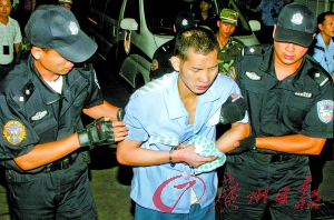 杜秋發:沒有。過去我們從審訊他的同伙中知道成瑞龍雖然六親不認,但心里還是牽掛自己的兒子的,當我們問他有什么要求時,他回答說:“我最關心我仔,希望能見到他。”我當時就說:“等回到佛山,他們會盡量安排你們見面的,而且我們看到你兒子了,長得很高大很帥。”他的情緒很快就恢復平靜,對殺害佛山民警案件供認不諱,后來一路押解回來也很順利。