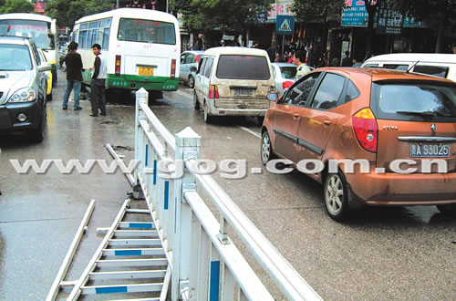 “想提醒駕駛員開慢點,話到嘴邊還沒說出來,車子就撞上了。”據乘坐貴AU5063的90路中巴車乘客蔣先生說,他們的車子從合群路發車出來后,過了公園路與延安路十字路口時,駕駛員一直踩著油門不放。在距離事故現場20多米遠的地方時,駕駛員才看見前面的90路中巴車慢慢開進站。駕駛員踩剎車,往左邊打方向,想避讓,可惜車速太快,慣性太大,滑行20多米后,車頭往中央護欄撞去,車尾往右邊猛甩,撞在貴AU5109中巴車左尾部。車上拉緊扶手的乘客被彈了個來回。一名坐在副駕駛位置上的女乘客,還從破碎的前擋風玻璃處飛了出去。