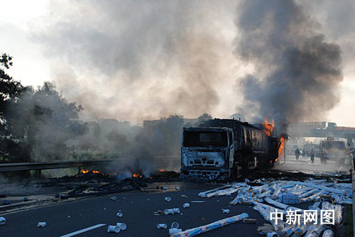 據江門市交警部門稱,27月8日05時20分,一皖籍大型貨車運載PVC管沿開陽高速公路往陽江方向行駛,行至開陽高速公路恩平市大槐路段時,與前方運載甲醇的一粵籍的重型半掛牽引車發生碰撞,碰撞后,兩車迅速著火燃燒,皖籍大型貨車車上三人當場死亡。