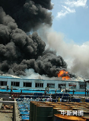 中新網溫州7月19日電(記者 江耘) 今天上午10時50分許,浙江溫州龍灣區一筆業企業的倉庫發生大火。截止記者發稿時,百余名消防戰士在火場奮戰3個多小時。不過,目前火勢仍未完全控制。