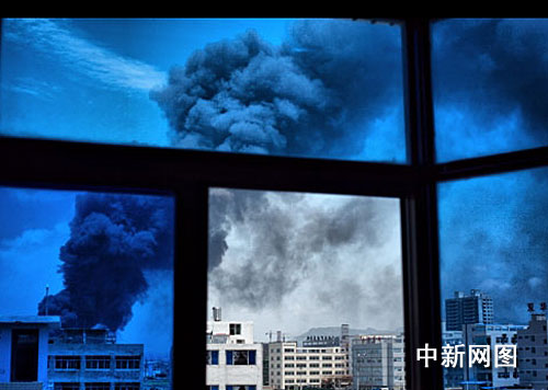 倉庫內裝有大量成品貨物,貨物燃燒產生了大量濃煙,整個事故現場濃煙滾滾。據一位現場知情者透露,濃煙之大,前所未有,“整個溫州市區幾乎都能看見火災上空的濃煙!奔由犀F場風向變化不定,空氣中彌漫著刺鼻的化工氣味。