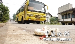 昨日上午11時,記者前往現場發現。車禍發生在水土鎮藥王街入口處的“鑫旭酒樓”門前,肇事車當時由水土鎮往金刀峽方向行駛。盡管車禍現場已被交警部門處置,肇事轎車被拖走,但現場仍可見大量血跡遺留地面,一雙沾有血跡的女式白色涼鞋靜靜地躺在馬路中間。旁邊圍墻上,肇事轎車將其撞開了一個籃球大小的窟窿。