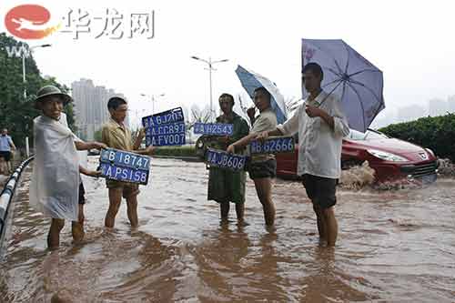 近兩天,山城重慶遭受了大暴雨襲擊,導(dǎo)致主城有些路段積水深達幾米,不少過往車輛猶如在江中行駛,造成一些車牌飄落于積水中。不少“撈客”卻從中發(fā)現(xiàn)了“商機”,他們將積水中撈出的車牌,在返還車主時,向他們索要100元的幸苦費。