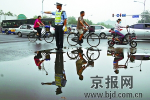 自從黃曉明在電影《愛(ài)情呼叫轉(zhuǎn)移Ⅱ》中出演了一名酷酷的帥交警之后,網(wǎng)上不斷出現(xiàn)各地最帥交警的視頻和帖子。8月2日,人民網(wǎng)上出現(xiàn)了“北京最帥交警”的一組視頻,網(wǎng)友還爆料說(shuō),這就是黃曉明出演交警的原型!皫浗痪币幌伦印盎稹绷似饋(lái)。拍攝這組視頻的是中國(guó)政法大學(xué)新聞與傳播學(xué)院2009年暑期社會(huì)實(shí)踐的幾個(gè)學(xué)生,拍下這些畫(huà)面的一名學(xué)生在鳳凰博客上感慨:“穿上警服戴上墨鏡的孟警官,整個(gè)人的感覺(jué)不知要比黃曉明版的交警帥了多少倍。尤其是他指揮交通的時(shí)候,真的有一種指揮千軍萬(wàn)馬、揮斥方遒的大將氣度!