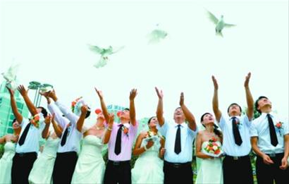和邵利平夫婦同樣激動的還有9對農(nóng)民工新人。市總工會相關(guān)負(fù)責(zé)人介紹,考慮到農(nóng)民工家中生活都比較困難,所以特意為10對新人的家屬報銷了往返車票,今后還將為農(nóng)民工免費(fèi)舉辦更多的集體婚禮。