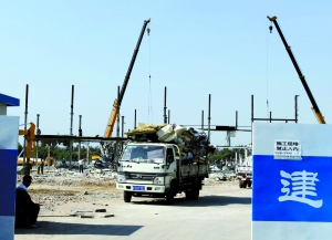 昨日10時許,朝陽區(qū)天澤路東,曾經(jīng)繁華熱鬧的星吧路餐飲街被圍在新砌的白粉墻內(nèi),拆成了一片空曠地,僅剩的一棟2層小樓露出了鋼骨架,十幾名工人扛著大錘、電焊槍在作業(yè)。幾錘下去,一片墻體就塌了下去。一名工地施工人員證實,這就是“老外釘子戶”的餐吧,“等了兩三個月,終于拆了。”他說,預計當日可基本拆除。