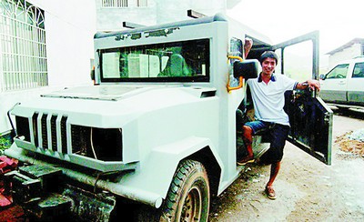 一說到“悍馬”,人們馬上會想到那擁有“越野之王”美譽的龐然大物,可瀏陽文家市鎮(zhèn)文華村28歲的花炮機械設計師楊倫偉,著迷于“悍馬”的彪悍外形,突發(fā)奇想,與徒弟一起造出了一輛“山寨悍馬”,惹得周圍鄰居連連稱奇。