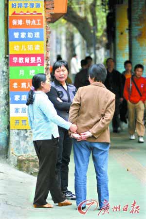 廣州目前有200多萬戶家庭,其中至少有20%的家庭要請住家保姆和鐘點工。有老人的家庭對保姆需求更大,而到去年底廣州市60歲以上的老人有108萬,并以每年4%的速度遞增。相比急速增長的需求,廣州家庭服務(wù)業(yè)現(xiàn)狀卻是“小、散、弱”。管理的缺失一直困擾著這個行業(yè)的健康發(fā)展,如何扭轉(zhuǎn)這一局面?