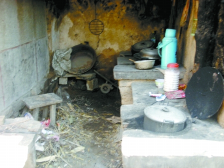 老人有關(guān)節(jié)炎,但一家的重?fù)?dān)都?jí)涸谒缟稀@顝V的老伴去年冬天下山采購(gòu)年貨時(shí)摔倒了,摔傷了頭和胳膊,除了基本的自理外,已經(jīng)不能做重活了。因家庭貧困,沒(méi)錢買更好的藥,現(xiàn)在老伴主要靠吃一些止痛藥來(lái)遏止病痛。殘疾智障的兒子更需治療。他們?cè)谏巾敱俪龅娜齼僧地,已無(wú)法養(yǎng)活這個(gè)家。