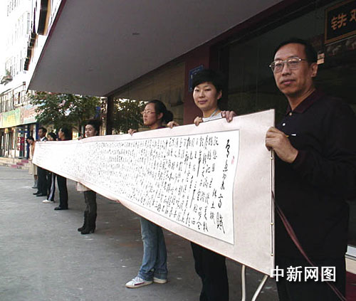 新疆一殘疾人書13米長卷獻禮國慶(圖)