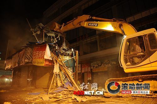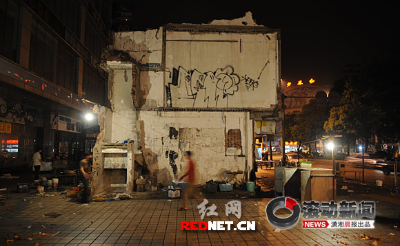 2009年8月7日凌晨3時,長沙市南門口,其中1棟破舊房子悄然拆除。自此,長沙南門口最牛釘子戶的3棟房子,因其中一棟已于之前被強制拆除,加上當日凌晨被拆除的這棟,只剩下最后一棟,也是面積最大的一棟。