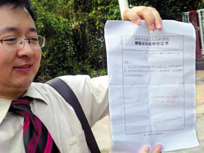 “檢察院沒有向梁麗提出公訴。”劉建華對這個結果既覺喜出望外,又有點理所當然。他告訴記者,進入檢察院后,一名檢察官宣讀了案件的處理結果。他轉述了檢察官宣讀的文件:“梁麗,我院受理你涉嫌盜竊案,現已查明,因為證據不足盜竊罪名不成立。但我院認為你涉嫌侵占罪,因侵占罪屬自訴告知處理案件,我院無權處理,先把案件發回公安機關。檢察院”