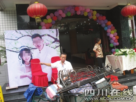 曾先生和李小姐決定結束他們幾年來的愛情長跑,昨日在新南門某酒店擺設婚宴。昨日上午,客人絡繹不絕地趕到酒店,一共坐了20多桌。