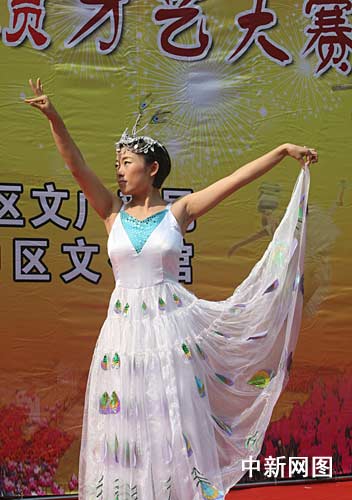 中新網重慶9月29日電 (孟幻 郭晉嘉)舞蹈、魔術、笛子獨奏……29日,來自重慶市渝中區12個街道的上百名外來務工人員獻藝,參加當地舉辦的外來務工人員才藝大賽,迎接新中國60華誕。