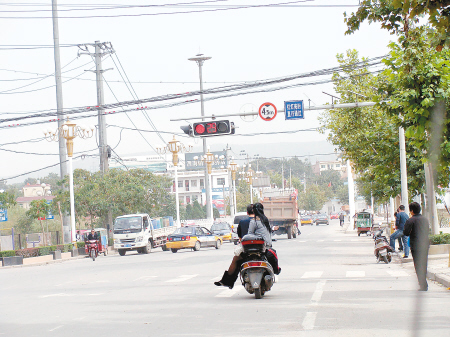 10月8日,一位從華山大街向東行的外地司機(jī)把車停在民生街丁字口的紅燈前,不知道如何是好。原來前方的紅燈亮著,但是旁邊的藍(lán)牌子上卻寫著“紅燈亮?xí)r 直行通過”,他看著身邊的車既有飛馳通過的,還有停車觀望的,更多的是半停半走猶豫不決的。所以不知道該怎么辦。而渭南的出租車司機(jī)老胡說,這個紅綠燈堪稱“最牛”,設(shè)立得根本就不科學(xué),設(shè)立這么一個牌子,難道旁邊還要再加個牌子說綠燈亮?xí)r繼續(xù)通行?當(dāng)?shù)厝舜蠖济靼祝@個紅綠燈設(shè)立的目的是限制向北拐的,只要把紅綠燈設(shè)置個向北的箭頭就可以了,而弄個紅燈加個說明有些自相矛盾。記者查閱《中華人民共和國道路交通安全法》,第二十六條規(guī)定:“交通信號燈由紅燈、綠燈、黃燈組成。紅燈表示禁止通行,綠燈表示準(zhǔn)許通行,黃燈表示警示。”