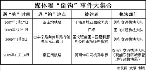 而上海當(dāng)?shù)匾晃焕纤緳C(jī)則透露,“倒鉤”執(zhí)法在上海其實(shí)很普遍,“因?yàn)檎娴暮谲嚭茈y抓,所以就找個(gè)‘釣鉤’來釣?zāi)闵香^,讓你做黑車、罰點(diǎn)款。整個(gè)上海市至少有上千個(gè)‘釣鉤’。”