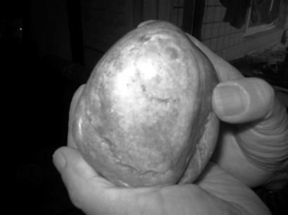記者注意到,這塊黃白相間的石頭形狀與我們從書中看到的馬克思頭像十分相似,有“馬克思的嘴”、“馬克思的鼻子”、“馬克思的胡須”!斑@些圖案都是天然生成的,我運氣太好了。”為了保護它,陳國良還特意在石頭表面抹了一層營養霜。據陳國良介紹,“馬克思”是9月4日他在人民北路一段路口撿到的,他準備終身收藏。(胡莉)