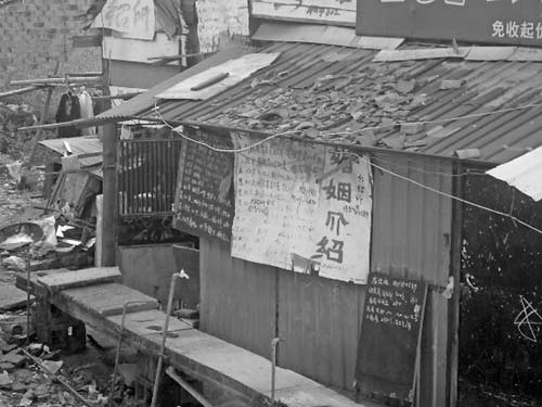 昨天,記者來到臺州市黃巖區江北路34號,地處永寧江大橋橋墩西側的一處兩層樓房,房屋外頭很破舊,掛滿了中介信息。除了職業介紹、房屋介紹外,更多的則是婚姻和保姆介紹。