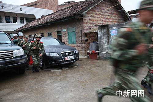 石順兵殺人后逃至一座方圓三平方公里、名為“大紅山”的荒山上藏匿。當(dāng)日下午,河池市武警官兵、公安民警等四百多人集結(jié)在山上進(jìn)行地毯式搜山。下午四點(diǎn)多,幾名武警發(fā)現(xiàn)山上一塊巖石下的草叢中竄出一人,其見(jiàn)到武警后又立即回竄,三名武警遂躍上前去。面對(duì)三個(gè)黑洞洞的槍口,石順兵舉起雙手說(shuō):“我投降!”