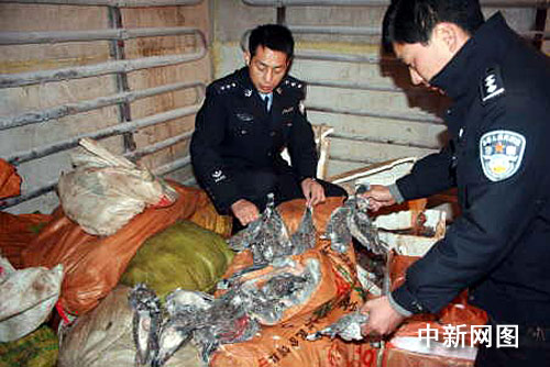 11月7日,太康縣公安局五里口派出所接群眾舉報:該鄉(xiāng)村民李某家中藏有毒鳥用的“藥品 ”及大量被毒死的鳥。民警立即趕到李某家中將其控制,并當場搜出斑鳩、麻雀、野雞、喜鵲等1172只鳥類尸體及毒鳥用的“藥品”5.5公斤。接著,民警又在該鄉(xiāng)一座冷庫內(nèi),查獲李某藏匿于此的斑鳩、麻雀、野雞等鳥類尸體21081只。