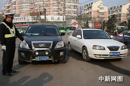 當(dāng)日上午9時10分,正在文化路崗執(zhí)勤的交警二大隊民警李磊看到一中年人急匆匆向他跑來,“民警同志,快攔住這輛等紅燈的奇瑞車,它掛的牌照和我的一樣,是一輛套牌車。”民警朝當(dāng)事人的手指的方向望去,果然見一前一后停著兩輛轎車,前車是一輛黑色奇瑞,后面是一輛白色現(xiàn)代,而兩車的號牌都是予N15699。