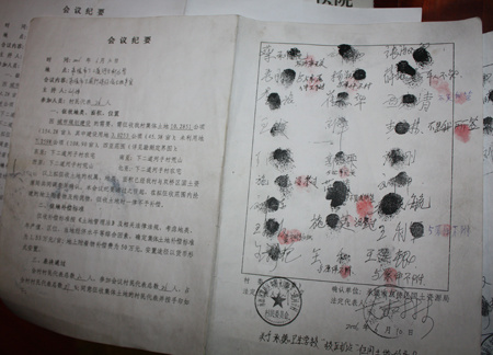 該《會議紀(jì)要》還稱:“全村村民代表總數(shù)30人,參加會議村民代表總數(shù)26人,占全村村民代表總數(shù)87%。”其后,在“同意征收集體土地的村民代表并按手印如下”之后,便有26位村民代表簽字和按的手印。《會議紀(jì)要》最后還有村委會和雙橋區(qū)國土資源局兩個部門的負責(zé)人的簽字和公章。