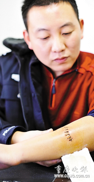 他叫張放,巫山縣公安局刑警大隊(duì)三中隊(duì)中隊(duì)長。昨天,張傷愈出院,行兇歹徒吳某被巫山縣警方刑事拘留。