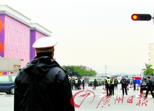 去年12月30日上午,東莞東坑鎮新東泰娛樂城與右邊東珠酒店之間的一條大路旁站了許多警察,在封鎖線里停著多輛警車,其中有14輛裝甲車。