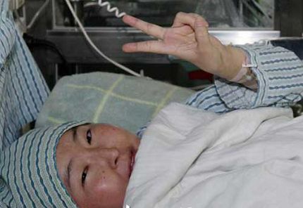 為阿依努爾捐獻造血干細胞的是一位來自四川南充,今年36歲的重型挖掘機的駕駛員,他叫李勇。李勇就像他的名字一樣,是一個非常勇敢,而且充滿愛心的志愿者。94年在廣東打工時,他就曾經見義勇為身中17刀,當時自費住院半年之后才康復。97年開始他又堅持義務獻血,隨著打工地點的變化,他前后在4、5個地方,先后獻血了15、16次,至今已經累計獻血6千毫升,相當于正常人體內全部血液量的1.5倍。